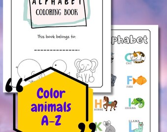 Alphabetimals Drawing Coloring Pack 100 Printable Animal Etsy Canada